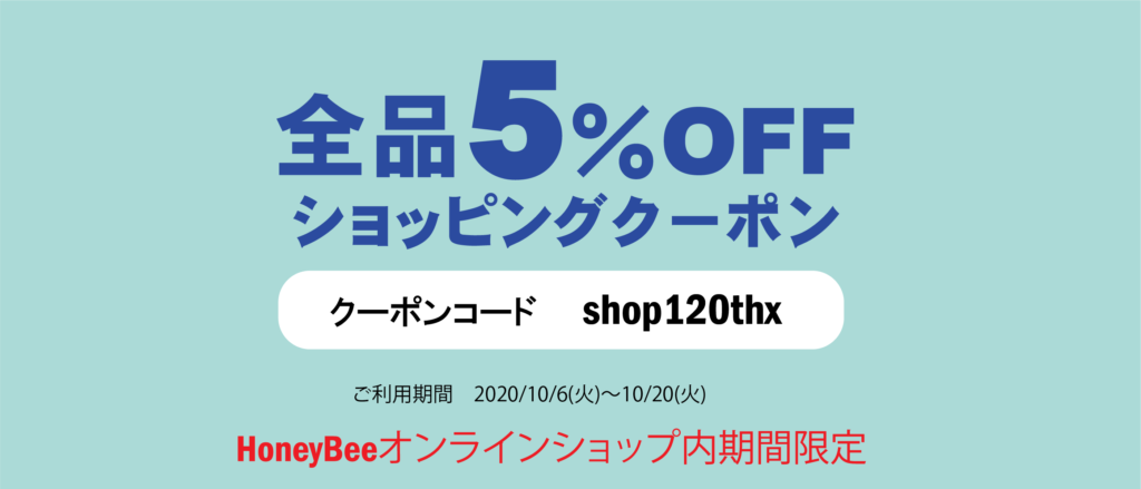 HoneyBeeオンラインショップ期間限定5%OFFクーポン開催中 投稿日2020年10月7日2020年10月7日投稿者hidebon007コメントをどうぞ 大変ご好評いただいているHoneyBeeのハチミツのオンラインショップ販売期間限定で5%OFFクーポン配布中です。商品も残りわずかですがこの機会を是非ご利用くださいませ☆